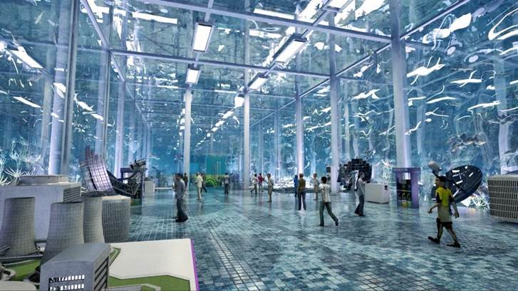 Павильон воды для ЭКСПО 2017 Вода играет важную роль в жизни нашей планеты «Земля». Все живое на земле вышло из воды. Поэтому авторами предложен павильон с наружным ограждением, наполненным водой – здание напоминающее океанариум. Его достоинством и новизной является то, что красотой морского мира и всю водяную панораму за стеклом, можно наблюдать,как внутри, так и с наружи здания. Благодаря воздушной завесе между стеклянными слоями стены, океанариум может функционировать и зимой. Павильон символизирует прогресс технологий в синтезе с живой природой, призывает к сохранению окружающей среды. Отличительными чертами акрилового стекла являются его прочность, гибкость, возможность склеивания, легкость. Акриловое стекло в два раза легче и в 15 раз прочнее стекла. Кроме того, в отличие от обычного стекла, акрил на 100 процентов пропускает свет, что позволяет поддерживать высокую прозрачность несмотря на приличную толщину материала.