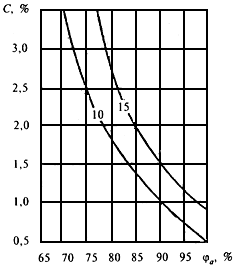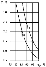Рисунок Щ.6 - Изолинии сорбционного влагосодержания керамзитобетона , содержащего NaCI - 30%, КСl - 60%, MgCl - 10%, при изменении относительной влажности воздуха , %, и массового солесодержания , %, в стенах цехов сушки