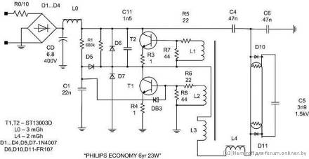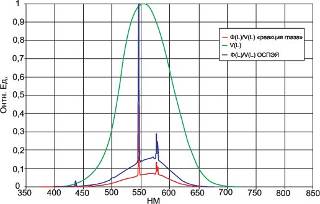 Рис.6 Спектральные характеристики энергосберегающей лампы. Но, тем не менее, надо решать вопрос с утилизацией. Здесь проще всего сдавать лампы в те же магазины, где их вам. За это магазин будет брать некоторую плату, впрочем, она может идти в зачет при покупке новой (как стеклотару меняли в свое время). е) Внутренняя компоновка и электрическая схема энергосберегающей лампы