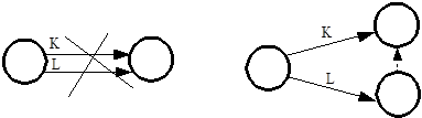 Исходные данные для построения сетевой модели могут задаваться различными способами, например: · описанием предполагаемого проекта. В этом случае необходимо самостоятельно разбить его на отдельные работы и установить их взаимные связи; · списком работ проекта. В этом случае необходимо проанализировать содержание работ и установить существующие между ними связи; · списком работ проекта с указанием их упорядочения. В этом случае необходимо только отобразить работы на сетевом графике. Построение сетевого графика необходимо начинать с выявления исходных работ модели. Если согласно условию некоторая работа может выполняться, не ожидая окончания каких-либо других работ, то такая работа является исходной в сетевой модели и ее начальным событием является исходное событие. Если исходных работ несколько, то их стрелки выходят все из одного исходного события. Если, согласно условию, после окончания некоторой работы не должны выполняться никакие другие работы, то такая работа является завершающей работой сетевой модели и ее конечным событием является завершающее событие. Если завершающих исходных работ несколько, то их стрелки заходят все в одно завершающее событие. На основании составленного перечня событий и работ строится сетевой график. В сетевом графике необходимо соблюдать последовательность нумераций событий, начиная от исходного события (ему присваивается наименьший номер, первый или нулевой) к завершающему. Если, согласно условию, несколько работ имеют общее начальное и общее конечное события, то они являются параллельными, имеют одинаковый код, что недопустимо. Для устранения параллельности работ вводят дополнительное событие и фиктивную работу (которой в реальности не соответствует никакое действие) таким образом, чтобы конечные события работ различались (рис.4).