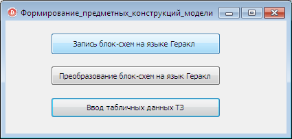 Ввод данных из ТЗ и формирование из них предметных конструкций модели выполняется программой Формирование предметных конструкций модели.