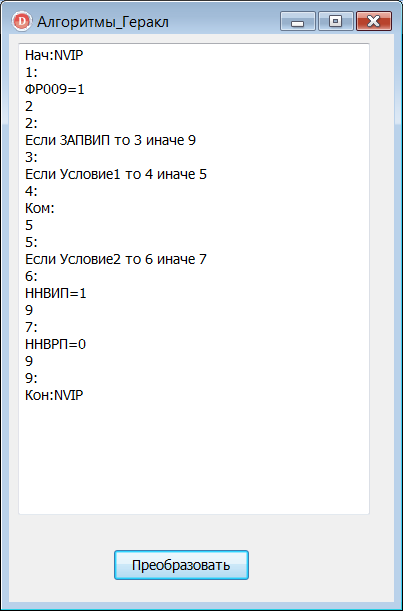 Преобразование блок-схем на язык Геракл