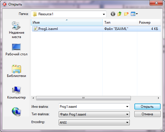 Шаблонный файл Prog1.isaxml находится в директории решения по пути следующего вида: …\Project1\Project1\Project1\Device1\Resource1\. Если при создании проекта была выбрана опция «Создать каталог для решения», как в данном примере, то имя решения будет совпадать с именем проекта.