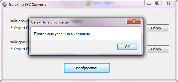 Для запуска процесса преобразования надо нажать кнопку «Преобразовать». После завершения преобразования выдается сообщение.