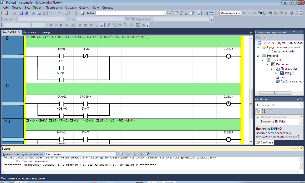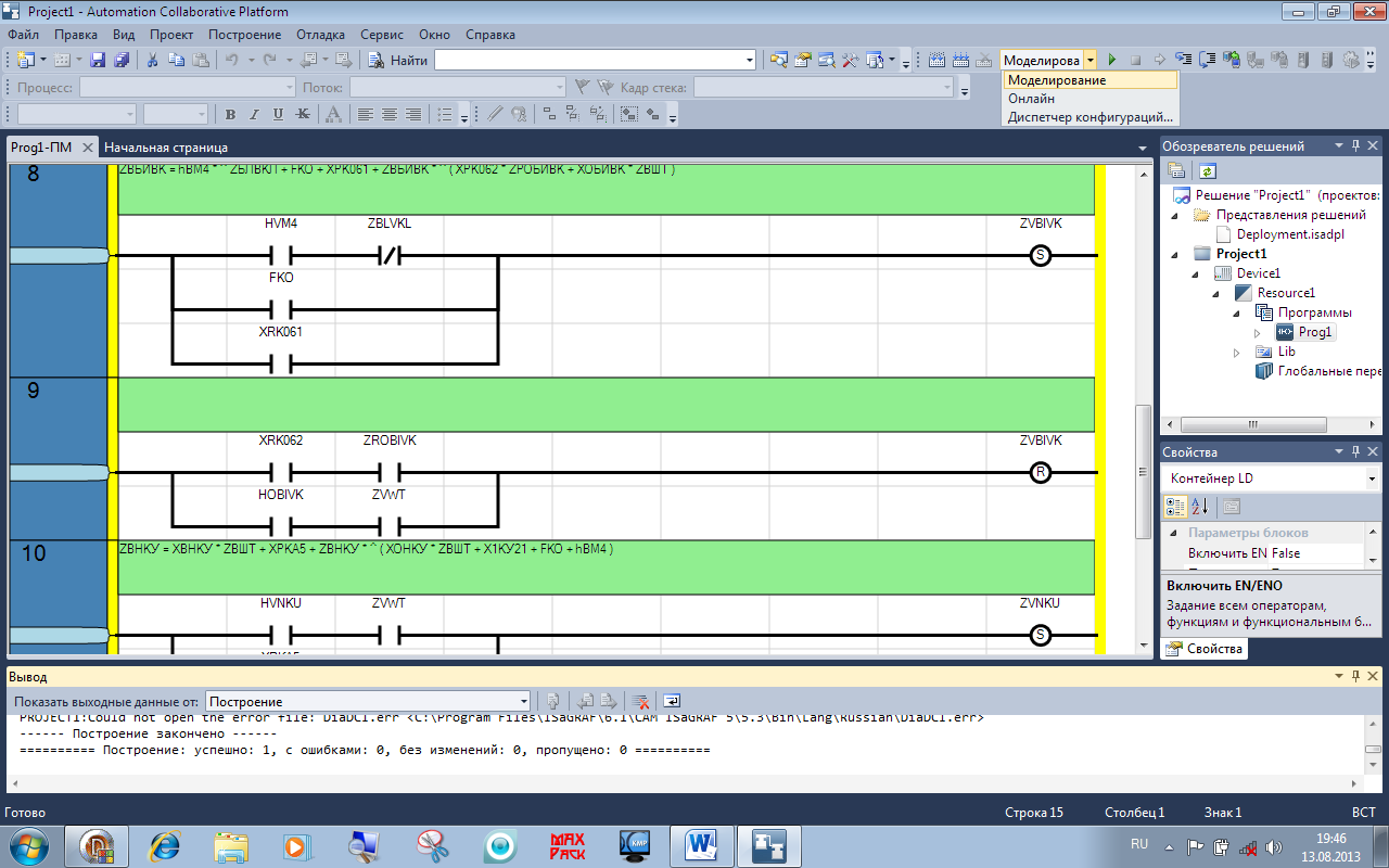 После визуального анализа можно приступать к моделированию (симуляции, выполнению). Строим решение (компилируем проект).