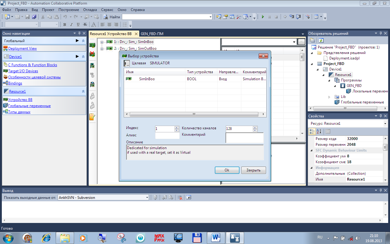 Используя окно навигации создаем виртуальные устройства ввода – вывода (монтируем переменные) для входов и выходов.