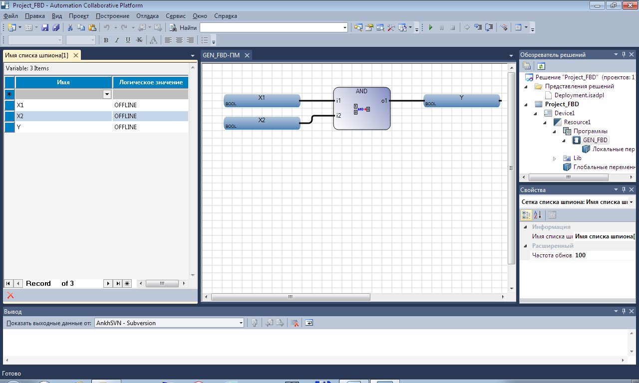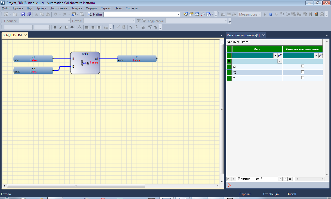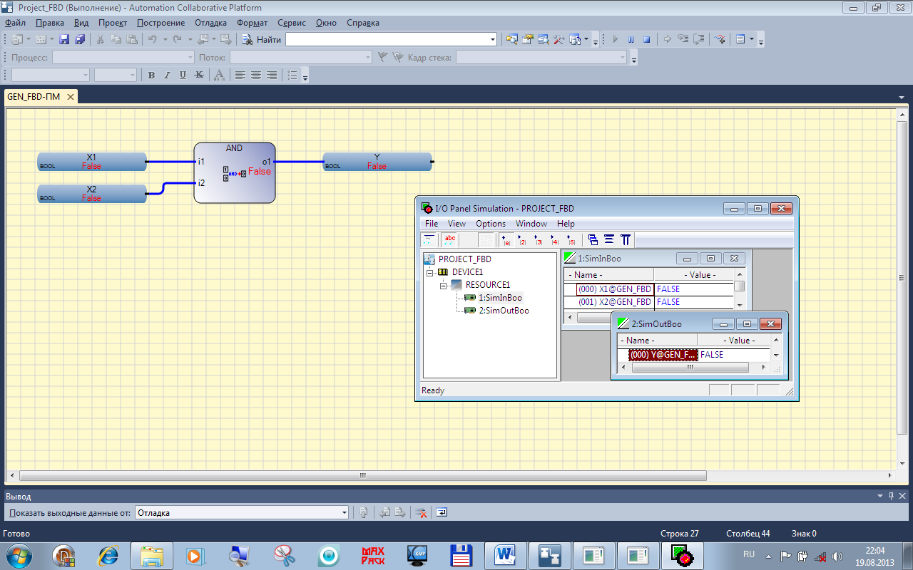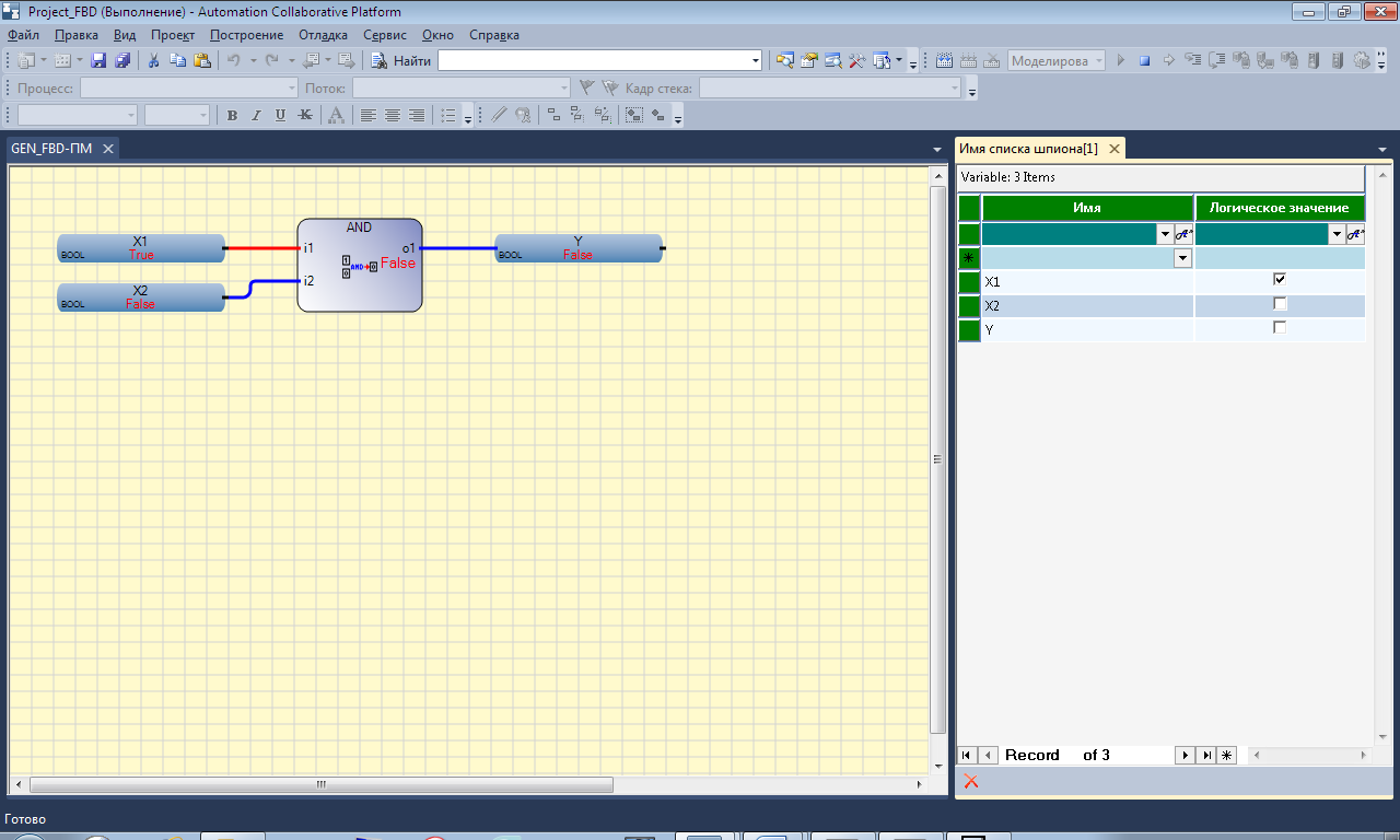 Рассмотрим процесс разработки FBD – программы на простейшем примере логического элемента AND. Создаем программу с помощью панели элементов.