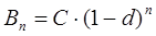 Решение: Пусть d - постоянная норма обесценивания и Bk - книжной ценой в конце k лет. Каждая новая книжная цена равна Так как k = 3 годам, и B3 = 5 млн. руб. и первоначальная стоимость С = 45 млн. руб.