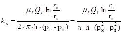 где Qж — расход жидкости или газа (при атмосферном давлении) в мэ/сек; QГ, QГ — расход газа при атмосферном и среднем давлении в образце в м3/сек; μж и μг — вязкость жидкости и газа в н·сек/м2; рн и рв — давление у наружной и внутренней поверхностей кольцевого образца в н/м2; rн и rв — наружный и внутренний радиусы кольца в м; h — высота цилиндра в м; kр — проницаемость в м2. Date: 2015-07-27; view: 1296; Нарушение авторских прав |