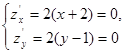 Если частные производные характеризуют скорость изменения функции в направлении соответствующих координатных осей, то производная в направлении вектора Градиентом функции z=f (x; у) называется вектор grad z= ( Свойства градиента 1. Производная 2. Производная в направлении вектора, перпендикулярного градиенту, равна нулю. 3. Пусть функция z=f (x; у) определена на множестве D и точка М f (М)< f (М0) (f (М)> f (М0)), то точку М Теорема 5.1 (необходимые условия экстремума). Если функция z=f (x; у) в точке М Точки, в которых Поэтому функция может достигать экстремальных значений только в критических точках; однако не всякая критическая точка является точкой экстремума. Пусть в стационарной точке М А= Теорема 5.2 (достаточные условия экстремума). 1. Если 2. Если Для случая, когда количество переменных п >2, пользуются такой теоремой. Теорема 5.3 Функция и = f (х Пример. Исследовать на экстремум функцию z= (х+ 2)2+(у -1)2. Решение.