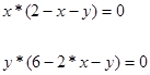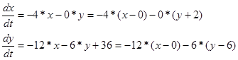 Корені рішення цього рівняння 3 пара коренів – x=4, y=-2 Cистема характеристичних рівнянь 1‑го наближення ряду Тейлора відносно точки (x=0, y=6) має вигляд: