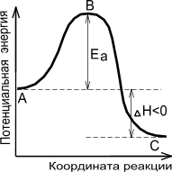 Рис. 1 Экзотермическая реакция Рис. 2 Эндотермическая реакция А - реагенты, В - активированный комплекс (переходное состояние), С - продукты.