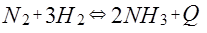 Прямая реакция — экзотермическая, а обратная реакция — эндотермическая. Влияние изменения температуры на положение химического равновесия подчиняется следующим правилам: При повышении температуры химическое равновесие смещается в направлении эндотермической реакции, при понижении температуры — в направлении экзотермической реакции. Во всех реакциях с участием газообразных веществ, сопровождающихся изменением объема за счет изменения количества вещества при переходе от исходных веществ к продуктам, на положение равновесия влияет давление в системе. Влияние давления на положение равновесия подчиняется следующим правилам: При повышении давления равновесие сдвигается в направлении образования веществ (или исходных продуктов) с меньшим объемом; при понижении давления равновесие сдвигается в направлении образования веществ с большим объемом: