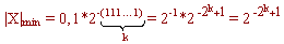 Это лишь условное изображение основных слогов в числе. Заметим, что в реальной ЭВМ может быть принят любой другой порядок расположения. Пусть " m " разрядов отведено под изображение мантиссы, а " k " разрядов под изображение порядка. Тогда для двоичной системы и нормализованного вида числа: