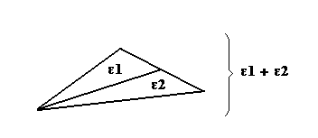 рисунок 16 этих треугольников, то мы имеем треугольники с разным дефектом – и значит с разной суммой углов. Таковы, например, треугольник разделённый на два других и один из его составляющих или треугольник заключающий в себе другой треугольник и его заключаемый. (как на рисунке)