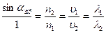 Кут, при якому відбитий промінь рухається по межі розподілу двох середовищ називають граничним кутом повного відбивання . 8. Закон заломлення для граничного кута повного відбивання має вигляд