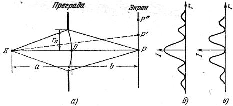 шириной – объект 23. Вместо яркой точки на экране появится пятно, размазанное в направлении, перпендикулярном щели. Оно состоит из центрального дифракционного максимума и ряда побочных максимумов по обе стороны от центрального. Размер пятна определяется фундаментальным соотношением дифракции: если излучение с длиной волны проходит через отверстие размером , то возникает дифракционная расходимость, определяемая углом дифракции , порядок величины которого