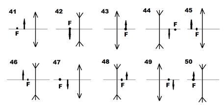 № 41–50: Постройте изображение в линзе, охарактеризуйте это изображение: