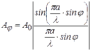 Для точки О, лежащей против центра щели, угол φ=0 и Аφ=А0. Этот результат следует, как мы видели, и из физических рассуждений. Следующий за ним первый максимум можно найти при решении уравнения
