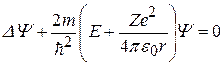 Здесь Δ – оператор Лапласа ( В атоме водорода или водородоподобном ионе потенциальная энергия электрона равна: