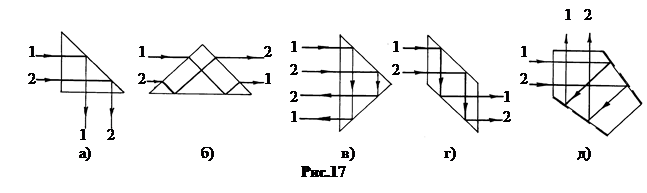 В таблице 4.1 приведены значения показателей преломления некоторых веществ и значения предельных углов полного внутреннего отражения. С увеличением показателя преломления n предельный угол b пред уменьшается. Полное внутреннее отражение используется в оптических приборах для удлинения оптического пути без увеличения габаритов прибора (бинокли), для переворачивания изображений и так далее. Основным элементом здесь являются призмы полного внутреннего отражения.