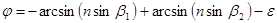 j = -a 1 + a 2 - e. (4.8) Запишем закон преломления луча в точках A и B, полагая, что призма находится в воздухе с показателем преломления 1.