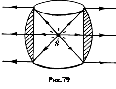 В принципе такая задача может быть решена с помощью круговой цилиндрической линзы, фокус которой находится в геометрическом центре (рис.79). Однако техническая реализация такой линзы очень сложна.