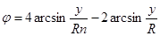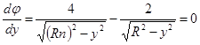 Для жёлтой D -линии натрия λ = 589,3 нм показатель преломления воды n = 1,333. Расстояние точки А вхождения этого луча от оси y = 0,861 R. Предельный угол для этого луча равен