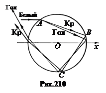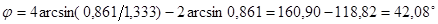 Интересно, что точка В первого отражения луча в капле также максимально удалена от оси капли. Исследовав на экстре-мум угол d = p – α – ε = p – α – (p – 2 β) = 2 β – α по величине у, получаем то же условие, у = 0,861 R и d = 42,08°/2 = 21,04°. На рис.206 показана зависимость угла φ, под которым из капли выходит луч после первого отражения (формула 25.2), от положения точки А входа луча в каплю. Все лучи отражаются внутри конуса с углом при вершине ≈ 42º.