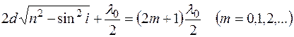 Таким образом, для данных λ0, d и п каждому наклону i лучей соответствует своя интерференционная полоса. Интерференционные полосы, возникающие в результате наложения лучей, падающих на плоскопараллельную пластинку под одинаковыми углами, называются полосами равного наклона.