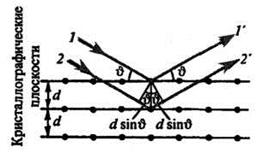 Дифракция света наблюдается на одномерных решетках (система параллельных штрихов), на двумерных решетках (штрихи нанесены во взаимно перпендикулярных направлениях в одной и той же плоскости) и на пространственных (трехмерных) решетках — пространственных образованиях, в которых элементы структуры подобны по форме, имеют геометрически правильное и периодически повторяющееся расположение, а также постоянные (периоды) решеток, соизмеримые с длиной волны электромагнитного излучения. Кристаллы, являясь трехмерными пространственными образованиями с постоянной решетки порядка 10-10 м, могут быть использованы для наблюдения дифракции рентгеновского излучения (λ ≈ 10-12÷10-8 м).