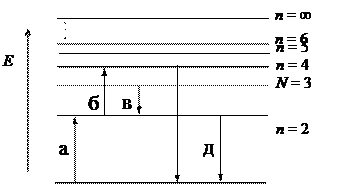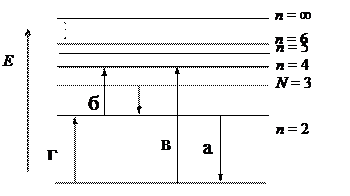 8. Поглощению наибольшей длины волны ультрафиолетовой серии, показанной на рис., соответствует переход …