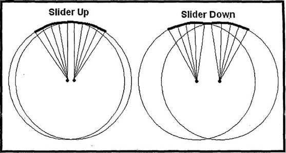 Представьте, что скоростные парашюты, во фронтальной проекции, представляют собой два полукруга, разделенных и ограниченных присоединенными стропами (см.рисунок). Если бы мы позволили стропам разойтись друг от друга на большее расстояние, это несколько улучшило бы процесс планирования. Первым шагом на пути осуществления этой цели будет опустить слайдер вниз к основанию строп, и ослабить лямку на груди. Это позволит куполу «развернуться» (расправиться) и сделаться более плоским, что, фактически приведет к увеличению поверхности купола. Такой эффект лучше заметен на небольших куполах, особенно при большой загрузке крыла. Другой положительный момент крыла с отрицательным углом поперечного «V» - это увеличение ваших шансов уберечь себя от низких поворотов, а так же общее гашение колебательных движений по оси крена.