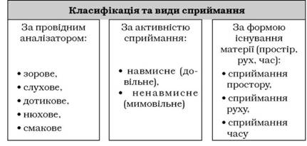 В ненавмисному сприйманні Не існує заздалегідь поставленої мети. Відсутнє в ньому і вольове зусилля Ненавмисне сприймання викликається особливостями навколишніх предметів: їх яскравістю, розташуванням, незвичністю, інтересом до них людини. Йдучи вулицею, ми чуємо шум машин, розмови людей, бачимо яскраві вітрини, сприймаємо різноманітні запахи тощо. Таким сприйманням є, наприклад, слухання доповіді або перегляд тематичної виставки книг Навмисне сприймання має іншу характеристику. При його здійсненні людина ставить перед собою мету, докладає певних вольових зусиль, щоб краще реалізувати свій намір, довільно обирає об'єкти сприймання. За формою існування матерії існує сприймання простору, руху і часу. Сприймання простору - відображення в психіці людини розташування, величини, форми, об'ємності, віддаленості один від одного предметів та явищ на землі та на небі Сприймання руху - відображення зміни положення об'єктів у просторі, що дає змогу орієнтуватися у відносних змінах, у взаємному розташуванні та взаємовідношенні предметів навколишньої дійсності Сприймання часу - відображення об'єктивної тривалості, швидкості та послідовності явищ дійсності, завдяки чому відображаються зміни, які відбуваються в навколишньому світі Іноді сприймання предметів буває неправильним, викривленим, помилковим. Ілюзії сприймання - неадекватні сприймання, які неправильно, викривлено, помилково відображають об'єкти, що діють на аналізатори Ілюзії зумовлюються різними причинами: виробленими життєвою практикою прийомами зорового сприймання, особливостями зорового аналізатора, зміною умов сприймання, дефектами зору тощо. Ілюзії породжуються діяльністю різних аналізаторів. Найпоширенішими є зорові ілюзії. Так, людина в білому одязі здається повнішою, ніж у темному. Те саме стосується тканин у горизонтальні або вертикальні смуги. Дзеркальна стінка розширює приміщення, створює ілюзію простору. Зорові ілюзії були помічені й у тварин. На практичному використанні зорових ілюзій будується маскування, яке є захисним пристосуванням для звірів, риб, пташок. Date: 2015-07-27; view: 573; Нарушение авторских прав |