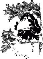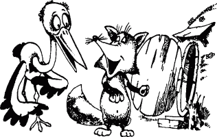 Нажарил мяса он, сварил к нему приправы, На мелкие кусочки накрошил И в узенький кувшин сложил. Меж тем Лиса, почуяв запах мяса, Пришла голодная, едва дождавшись часа, И ну, что было сил, Давай вокруг стола юлить и увиваться. И, щедрости соседа удивляться. Но лесть ей тут не помогла: По клюву Аисту кувшин пришелся впору, У гостьи ж мордочка чресчур была кругла...