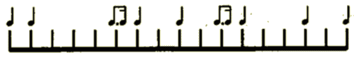 Сначала ребенку будет нелегко отстукивать ритм регулярно (особенно во время пауз, когда слова отсутствуют), но необходимо добиваться, чтобы он справился с этой задачей. Чтение ритма. Покажите ребенку листок бумаги, на который вы нанесли через равные промежутки небольшие вертикальные черточки (получится ритмическая линейка).