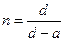Способ 2. На предметный столик кладётся пластинка, на поверхности которой нанесены одна над другой маленькие метки (точки); верхняя из меток должна быть полупрозрачной. Переходя от наблюдения верхней метки к наблюдению нижней, мы как бы опускаем наблюдаемый объект на толщину пластинки. Однако, нижняя метка, как уже было показано, кажется приподнятой на величину a. Таким образом, нижняя метка кажется отстоящей по нормали от верхней не на толщину, а лишь на расстояние d-a, на которое нужно опустить тубус. Обозначив величину перемещения тубуса для этого случая буквой b, получаем из (2) Результаты измерений занесите в таблицу: