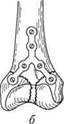 Переломы плечевой кости в дис-тальном отделе. Надмыщелковые переломы делятся на разгибательные, возникающие при падении на вытянутую руку, и сгибательные — при падении на локоть резко согнутой руки. К внутрисуставным переломам относятся чрезмыщелковые переломы, Т- и V-образные переломы мыщелков, перелом головки мыщелка плечевой кости. Симптомы: деформация локтевого сустава и нижней трети плеча; рука согнута в локтевом суставе; движения в локтевом суставе болезненны. При внутрисуставных переломах определяются патологическая подвижность и крепитация. Леченые: при надмыщелковых переломах после анестезии производят репозицию отломков. После этого конечность фиксируют задней гипсовой лонгетой (от пястно-фаланговых суставов до верхней трети плеча) и сгибают в локтевом суставе до угла 90— 100°; предплечье фиксируют в среднем положении между супинацией и пронацией. Через 3 — 4 нед лонгету снимают и начинают разработку локтевого сустава. При переломах со смещением возможна репозиция при помощи скелетного вытяжения на отводящей шине за локтевой отросток. Репозицию контролируют рентгенологически. Если вправить отломки не удается, применяют остеосинтез мыщелков спицами, винтами, болтами, V-образными пластинами (рис. 11). Даже после идеальной репозиции часто остается некоторое ограничение объема движений в локтевом суставе, которое связано: с повреждениями нерва во время репозиции; с чрезмерным сдавлением области локтевого сустава гипсовой повязкой или гематомой; в более позднем периоде — с оссификацией капсульно-связочного аппарата. Date: 2015-08-06; view: 551; Нарушение авторских прав |