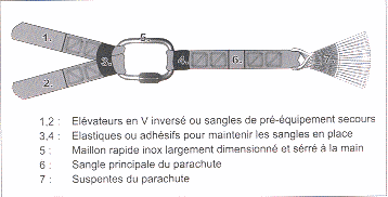 Специальные точки крепления предусмотрены на большинстве подвесок представленных на рынке. Они расположены обычно на уровне плеч. Это делает позицию приземления более "стоячей”, чем, если бы СП крепился на уровне крепления параплана
