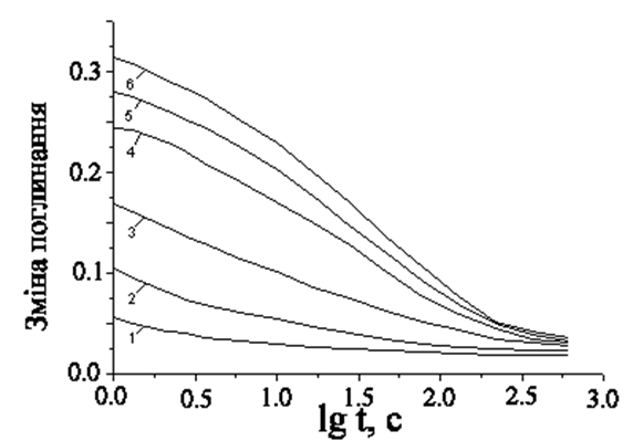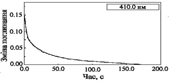 Рис. 1.5. Кінетика релаксації інтермедіату М412 у плівках БР без матриці.