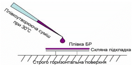 Рис. 2.1. Схематичне зображення виготовлення плівки БР методом поливу.