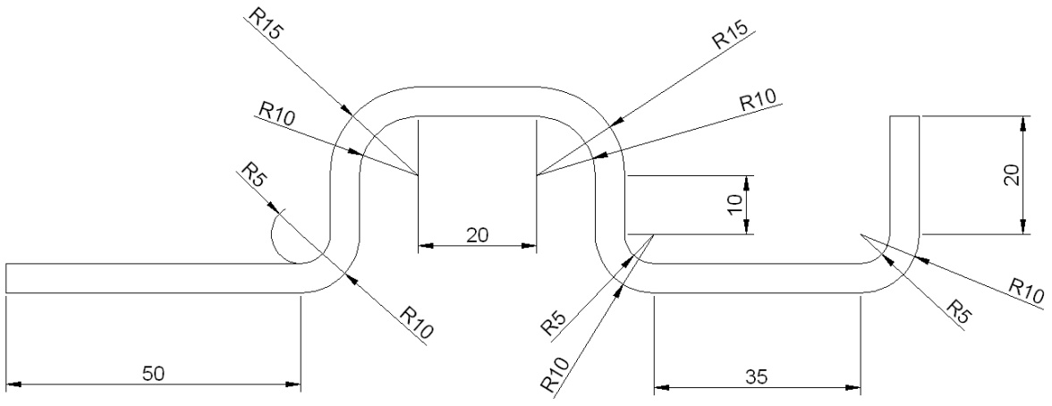 Необходимо начертить деталь из стального листа толщиной 5 мм, сечение детали изображено на рис. 5.5. Для этого включите команду ввода отрезков и в командой строке введите координаты точек: 0,0↙60,0↙60,30↙100,30↙ 100,0 ↙155,0 ↙155,30. После этого активируйте команду ввода сопряжений, установите сопряжения радиусом 10 мм и начертите все сопряжения. Затем запустите команду Подобие, в командной строке появится сообщение: Укажите расстояние смещения или [Через/Удалить/Слой], укажите расстояние смещения 5мм. После этого выберите первый из начерченных отрезков, а затем укажите точку с той стороны от отрезка, с которого должен располагаться новый элемент. Аналогичные действия проделайте с остальными объектами. Date: 2015-08-06; view: 3769; Нарушение авторских прав |