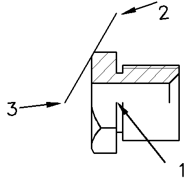 После этого начертите отрезок концы, которого лежат на пересечении прямых 1 и 3, а так же 2 и 3 (рис. 6.5,б). Этот отрезок как бы удлиняет линию фаски и поможет при построении конуса. Затем включите команду для построения конуса. За центр основания конуса примите точку 1, радиус - расстояние от 1 до 2, а высота расстояние от 1 до 3. Приемы создания конуса аналогичны приёмам создания цилиндра. Получившийся конус, так же как и ранее построенные цилиндры, необходимо повернуть на 90°, используя ранее изученные приёмы. Пересечение. Эта команда позволяет создавать трёхмерные тела или двухмерные области из выбранных перекрывающихся тел или областей. После того как вы повернёте конус, активируйте команду Пересечение, выберите два объекта конус и шестиугольник и нажмите Enter. Будет выполнена команда и останется фигура, которая одновременно принадлежит обеим фигурам, то есть шестиугольник с фаской. Вычитание. Эта команда создаёт области путём вычитания трёхмерных объёктов или двухмерных областей друг из друга. Создадим отверстие в штуцере, для этого активируйте команду Вычитание, выберите сначала объекты, из которых должны вычитаться тела, то есть шестиугольник и два больших цилиндра, затем выберите тело, которое будет вычитаться, то есть длинный цилиндр и нажмите Enter. В результате образуется практически готовая деталь. Обратите внимание, что при вычитании оставшиеся на экране части преобразовались в единую деталь. Осталось только сделать фаску с обратной стороны с помощью известных вам приёмов (рис. 6.6).