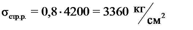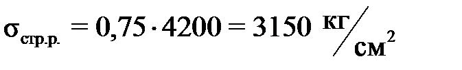где σв = 4200 кг/см2 – разрушающее напряжение материала стрингера панели на растяжение. Величина коэффициента k1, учитывающего влияние концентрации напряжений в силовых элементах конструкции при наличии отверстий под заклепки, принимается для стрингера растянутой панели, изготовленного из алюминиевого сплава 1163Т: k1 = 0,8. Тогда: