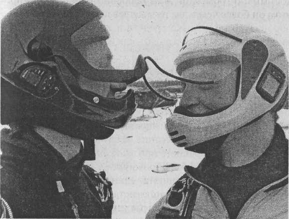 СНАРЯЖЕНИЕ ПАРАШЮТИСТА Теоретически опытный парашютист может надеть парашют на обычную одежду и безопасно совершить прыжок. Но так обычно не делают: во-первых, неудобно, во-вторых, для серьезных занятий парашютным спортом нужно дополнительное оборудование. Например, при групповых прыжках из соображений безопасности следует достаточно точно соблюдать высоту раскрытия и необходим жесткий шлем. Некоторые виды парашютного спорта накладывают ограничение на используемую обувь. Как и в других видах спорта, для полноценного выполнения прыжков стоит использовать специальное снаряжение. ОДЕЖДА Техника безопасности требует, чтобы одежда парашютиста была с длинными рукавами и штанинами. Допустим, парашютист при раскрытии парашюта непроизвольно начинает выполнять сальто вперед. В результате стропы раскрывающегося парашюта рывком скользят (или хлыстом ударяют) по ногам, оставляя синяки и ожоги, если ноги ничем не защищены. В сильный ветер возможно протаскивание парашютиста по земле. Кроме того, иногда парашютирование заканчивается в ветвях деревьев. В этих случаях тоже гораздо приятнее, если руки и ноги защищены соответствую- щей одеждой. Не слишком удобно прыгать в джинсах — они все-таки стесняют движения. В воздухе парашютист, особенно занимающийся парашютной акробатикой, должен быть особенно гибким. Джинсы сковывают движения. Гораздо удобнее прыгать в спортивном костюме или комбинезоне. И уж без сомнения, лучше всего для прыжков подходят специальные парашютные комбинезоны — свой для каждого вида прыжков. Для прыжков с круглым десантным или спортивно-тренировочным парашютом (Д-6, Д-1-5У и т.п.) удобнее всего свободный комбинезон из плотной хлопчатобумажной ткани. Он обеспечивает парашютисту свободу движений и защищает от синяков, царапин и ожогов при неудачном раскрытии парашюта, приземлении на лес и протаскивании. Комбинезон для групповой акробатики представляет собой комбинированную конструкцию. Групповой акробат в свободном падении лежит на животе и должен падать быстро, поэтому комбинезон должен плотно облегать тело, но при этом не сковывать движения. Передняя сторона комбинезона делается из скользкого синтетического материала; на рукавах, штанинах и пояснице — вставки из эластика; спина комбинезона должна дышать, чаще всего она из хлопчатобумажной ткани; штанины заканчиваются «ластами» — рулями для большей маневренности спортсмена в свободном падении (их надевают на мысок). Колени усиливаются плотным материалом, так как спортсмену приходится много ползать на коленках, укладывая парашют. На рукавах и штанинах комбинезона пришиваются своеобразные колбаски — захваты, за которые парашютисты держат друг друга в свободном падении, образуя таким образом фигуры групповой акробатики. Фрифлаисты обычно надевают свободные комбинезоны, которые немного тормозят стремительное падение, ведь спортсмен-фрифлаист падает быстрее любого другого парашютиста. К тому же такой комбинезон немного облегчает выполнение фигур фриф-лая, что важно для начинающих. Для классики, фристайла и скайсерфинга (скай-серф — прыжки с лыжей) используются облегающие комбинезоны, которые позволяют развить большую скорость и подчеркнуть фигуру спортсмена в артистических дисциплинах. Купольщики используют комбинезоны, защищающие от ожогов 