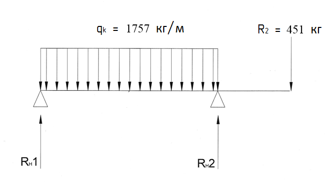 За длину балки принимаем расстояние от переднего лонжерона до оси вращения РН. Полученные реакции имеют следующие реакции: