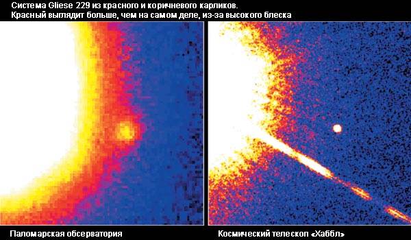 Слева изображение красного карлика системы Gliese 229 сделанное с земли Заключение.
