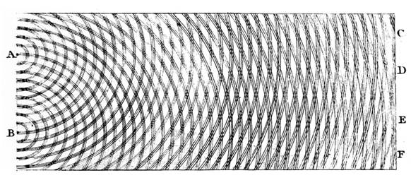 Опыт Томаса Юнга по интерференции света на двух щелях (1805 год) показал, что свет может рассматриваться как волна. Таким образом были опровергнуты ранние теории света как потока частиц.