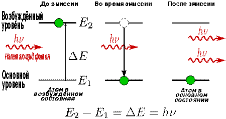 Кроме того, полагалось, что излучение и поглощение света атомами происходит независимо друг от друга и что тепловое равновесие в системе сохраняется за счёт взаимодействия с атомами. Рассмотрим полость, находящуюся в тепловом равновесии и заполненную электромагнитным излучением, которое может поглощаться и излучаться веществом стенок. В состоянии теплового равновесия спектральная плотность излучения Эйнштейн начал с постулирования простых соотношений между скоростями реакций поглощения и испускания. В его модели скорость