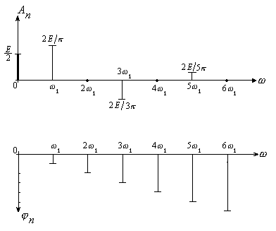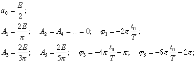 Так для q=2 («меандр») получаем следующие значения для амплитуд и фаз составляющих спектра: